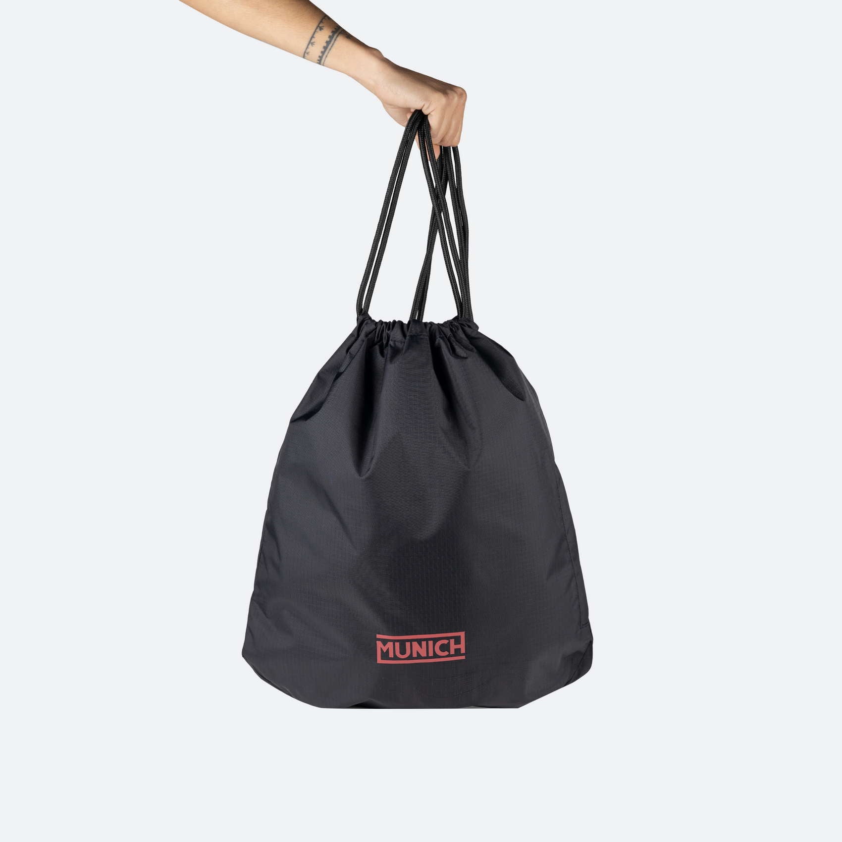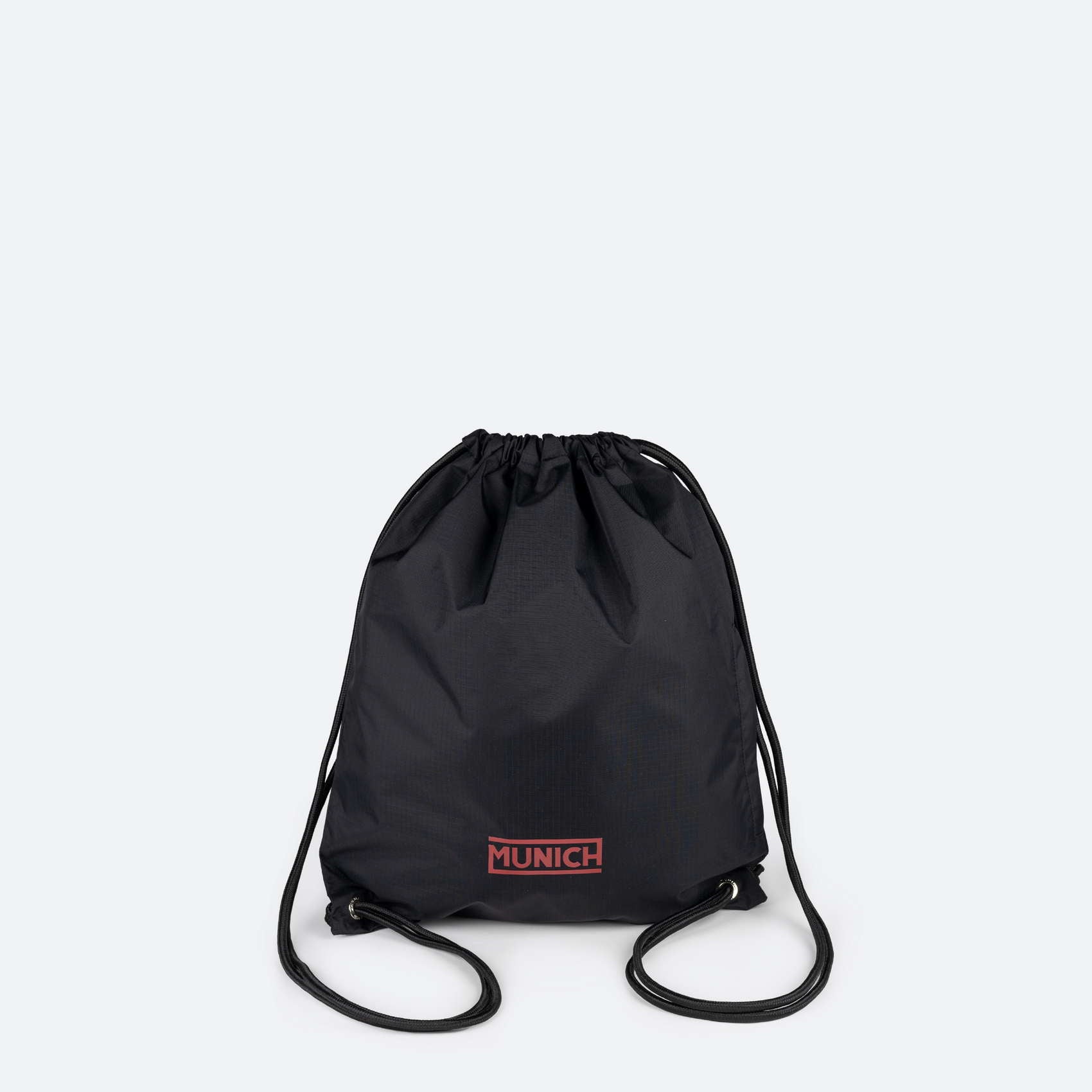 Mochila-saco deportiva de nylon con cierre de cuerda. Ideal para un ambiente urbano. En la parte frontal de la mochila encontramos una aplicación gráfica del logotipo MUNICH que está realizada con un material resistente al desgaste y da un acabado de calidad al producto.
